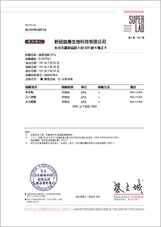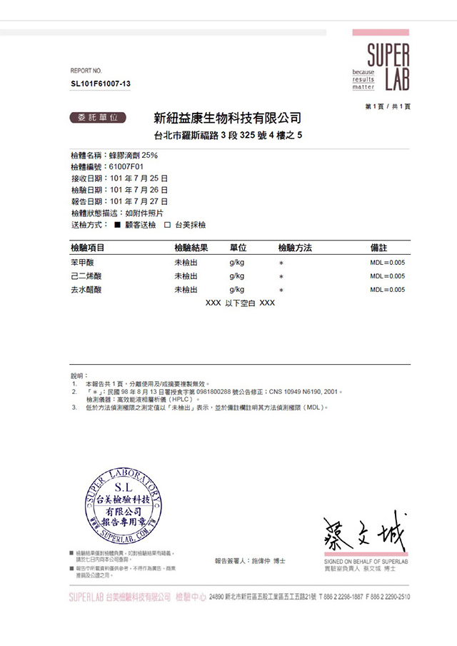 蜂膠滴劑SUPER LAB防腐劑檢驗報告