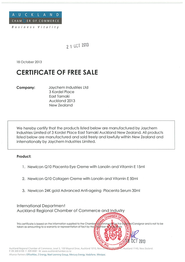 Q10系列自由銷售證明
